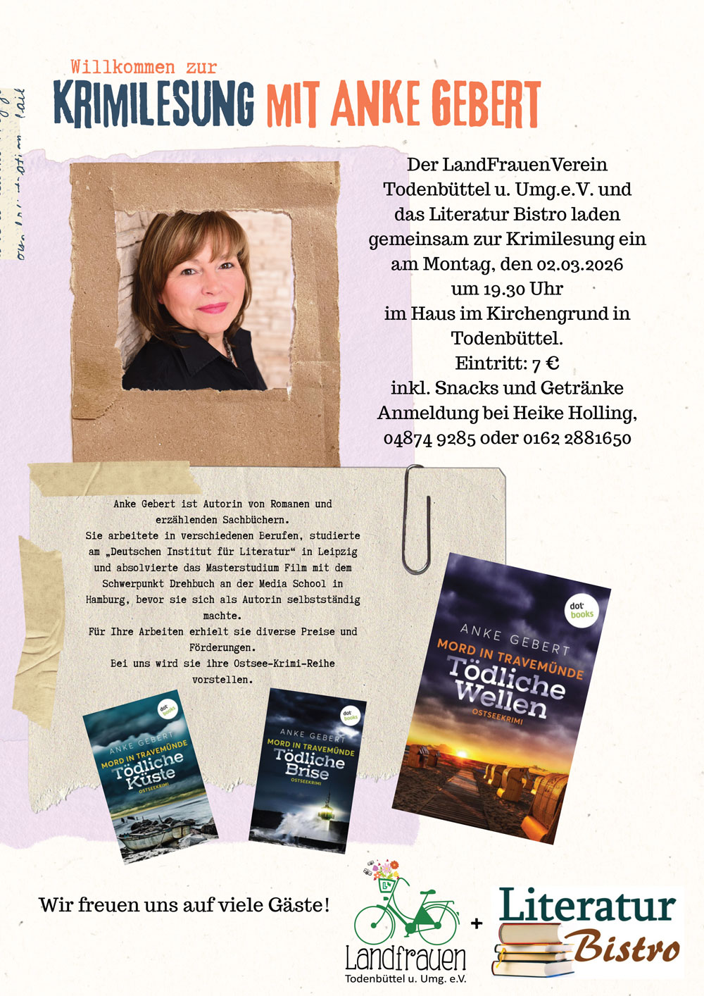 Lesung von Anke Gebert aus ihren Ostseekrimis